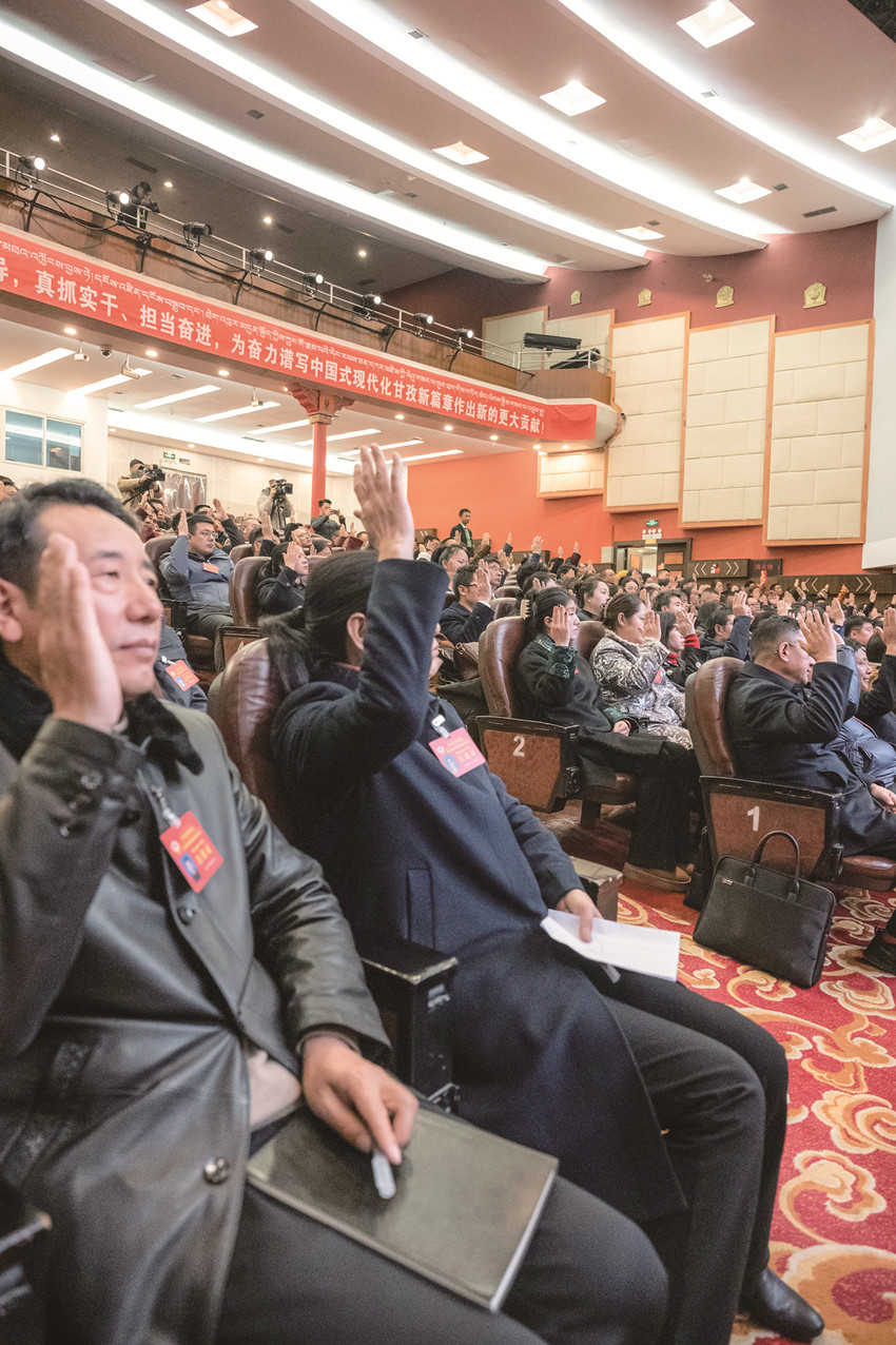 州政協(xié)委員們鄭重舉手表決通過各項(xiàng)報(bào)告。
