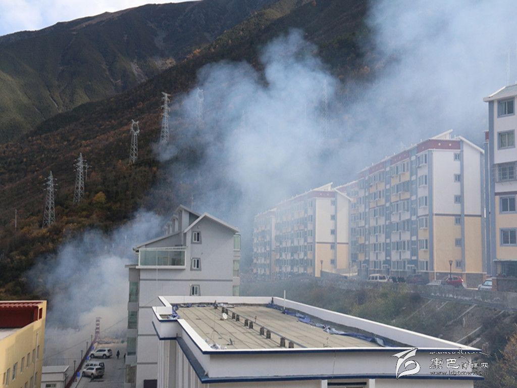 在康定新區(qū)的這片空地上記者看到,本應運走的垃圾,卻被就地焚燒,滾滾濃煙彌漫著整個天空,能見度不足十米??諝庵袕浡瘫堑臍馕叮瑔艿眠^往行人捂住口鼻疾行而過。