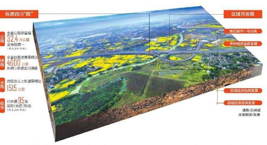 鐵路加快融入全國(guó)高鐵網(wǎng)。2015年,首條高鐵出川,西南地區(qū)首條時(shí)速300公里以上的高鐵——成渝高鐵開(kāi)通運(yùn)行。目前,全省鐵路運(yùn)營(yíng)里程達(dá)4600公里,形成9條進(jìn)出川通道,還有西成客專、成貴高鐵等里程超過(guò)2000公里的鐵路在建。