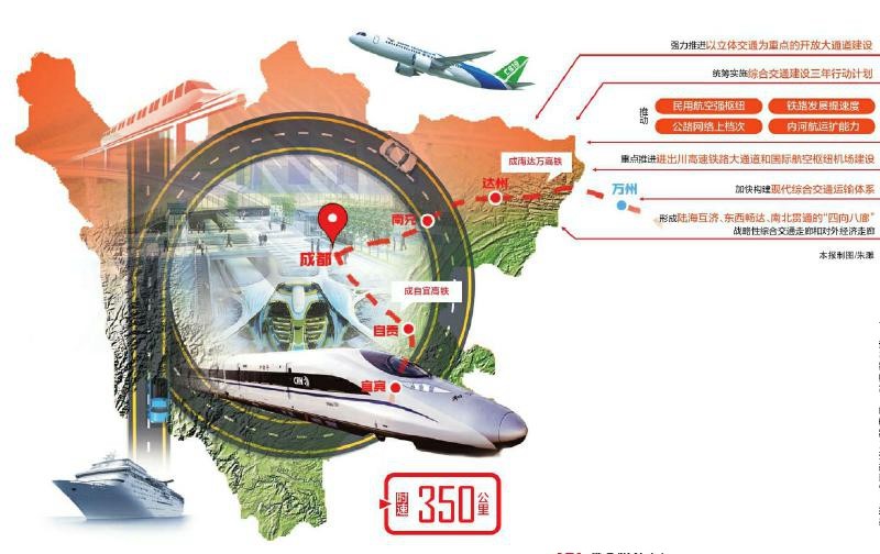 消除痛點(diǎn)。我省將重點(diǎn)推進(jìn)成都經(jīng)自貢至宜賓和成都經(jīng)南充至達(dá)州兩條350公里時(shí)速的高速鐵路建設(shè)。“這兩條高鐵建成后,四川與全國主要經(jīng)濟(jì)區(qū)均可實(shí)現(xiàn)高速直達(dá),省內(nèi)也可形成宜賓、達(dá)州兩個(gè)新的交通樞紐,從根本上消除目前只有成渝鐵路一條高速出川鐵路的局面?!睂O云表示。