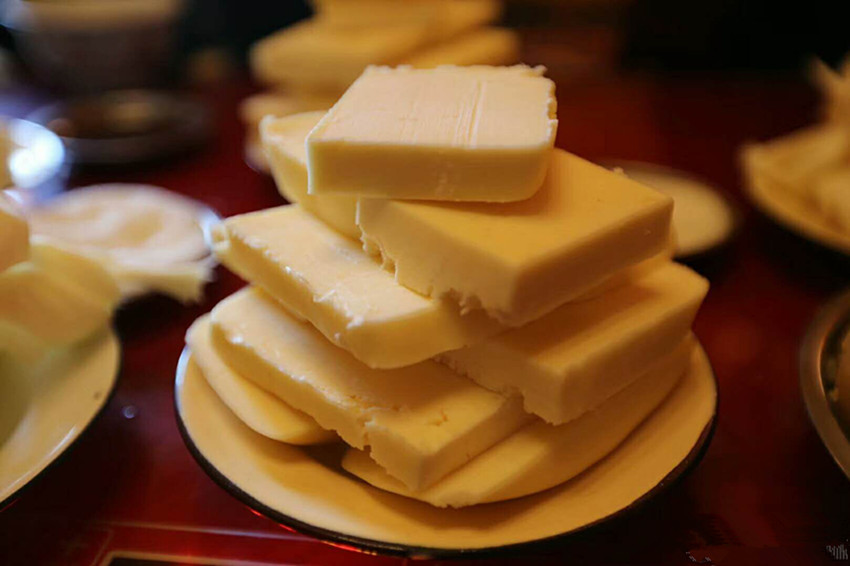 酥油的成分是脂肪,含蛋白質和多種維生素,營養(yǎng)價值高,含膽固醇少,長期食用酥油的藏族民眾身體強壯,抗寒能力強,平均壽命也長。