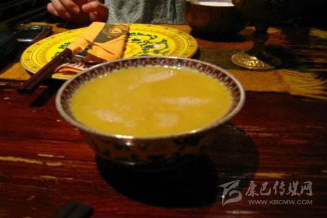 藏族酥油茶是一種以茶為主料,藏語為“恰蘇瑪”,意思是攪動的茶。并加有多種食物經混合而成的液體飲料,所以,滋味多樣,喝起來咸里透香,甘中有甜,它既可暖身御寒,又能補充營養(yǎng)。