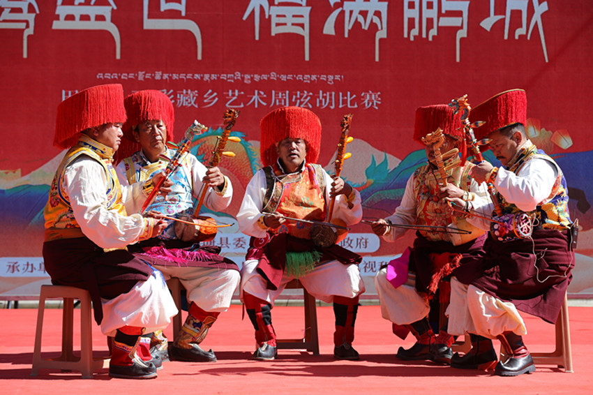 2月11日,巴塘縣2024年弦胡演奏大賽在中山廣場(chǎng)舉行,全縣17個(gè)鄉(xiāng)鎮(zhèn)的弦胡高手身著盛裝,同臺(tái)競(jìng)技,一場(chǎng)傳統(tǒng)與傳承相融的新春文化盛會(huì)就此拉開(kāi)。 李穎/文 格桑澤仁/圖