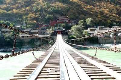 瀘定橋簡(jiǎn)介瀘定橋坐落在瀘定縣城大渡河上,為全國重點(diǎn)文物保護(hù)單位。該橋始建于清康熙44年,建成于45年(1706年)??滴跤P題定“瀘定橋”,并立御碑于橋頭。