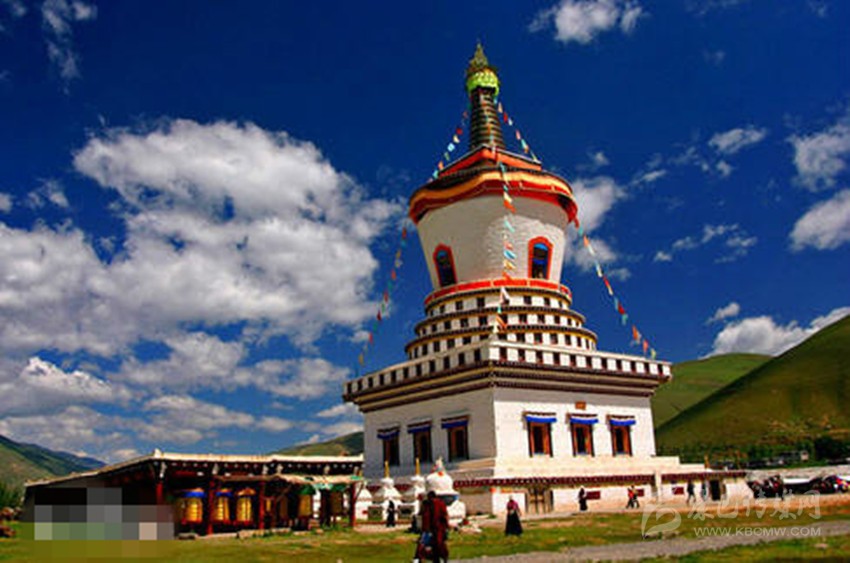 道孚尊神白塔(藏語為郎杰曲登),坐落在四川省甘孜藏族自治州道孚縣鮮水鎮(zhèn)的鈕日河畔,該塔由位于中央的主塔和二十四座小佛塔組成,石木結(jié)構(gòu)。主塔高53 24米,基寬28.5米,為十三層密檀飛檐的空心塔,內(nèi)設(shè)木梯可攀登至塔身項部。西與尼措山麓的古剎尼措寺遙遙相望,是康區(qū)最大的一座佛塔。